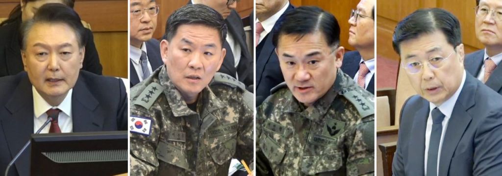 왼쪽부터 윤석열 대통령, 이진우 전 수방사령관, 여인형 전 방첩사령관, 홍장원 전 국정원 1차장