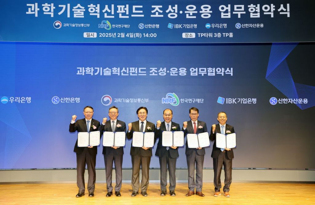 업무협약에는 자금을 출자한 신한은행, 중소기업은행, 우리은행 등 3개 은행과 기금(펀드) 운용사로 선정된 신한자산운용, 연구개발 자금 관리 전담기관인 한국연구재단 등이 함께 참여했다.