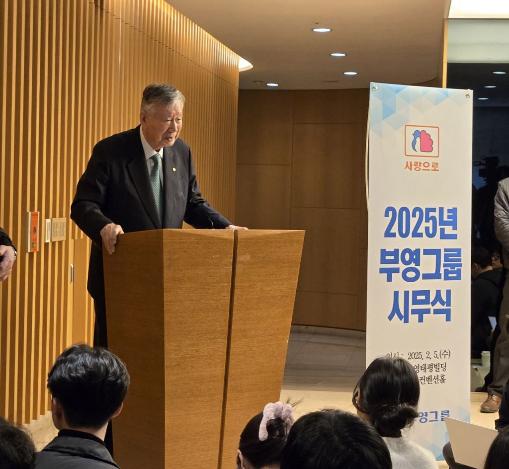 이중근 부영그룹 회장이 5일 서울 중구 부영태평빌딩에서 시무식을 마친 뒤 기자간담회를 하고 있다. 최서윤 기자