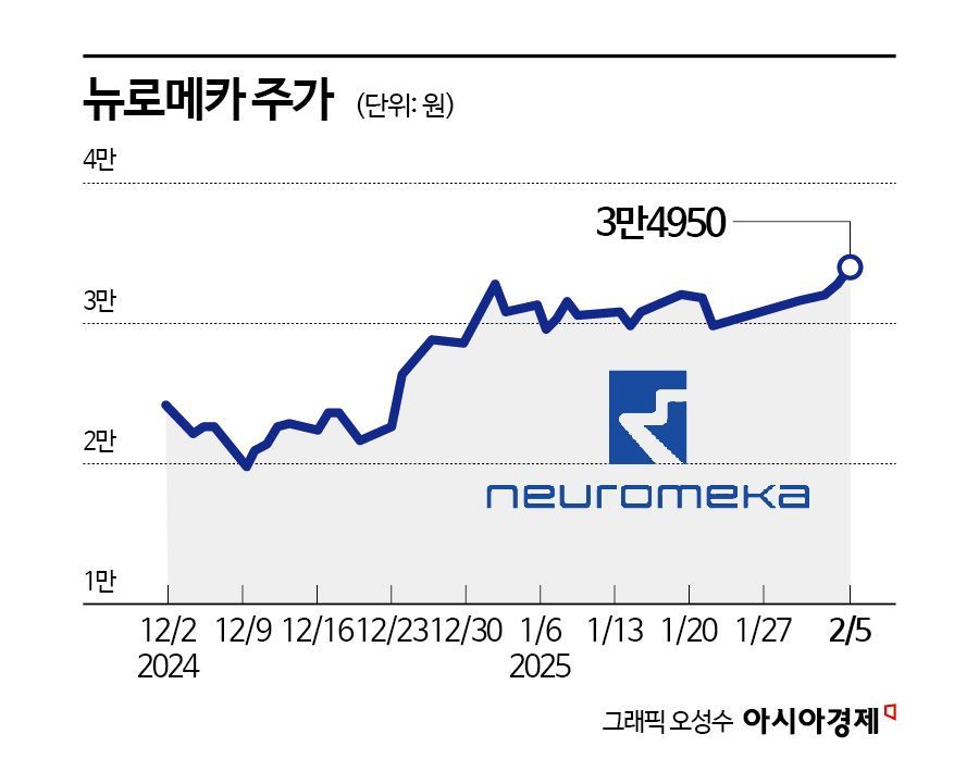 6일 금융투자 업계에 따르면 뉴로메카 주가는 올해 들어 21.6% 상승했다. 지난해 말 2만8750원으로 거래를 마친 뒤 한 달여 만에 3만4950원으로 뛰었다. 시가총액은 3700억원으로 뛰었다. 코스닥 지수가 7.8% 오른 것을 고려해도 시장 대비 수익률은 13.8%포인트에 달한다. 국내 기관투자가와 외국인이 각각 72억원, 24억원 누적 순매수를 기록했다.