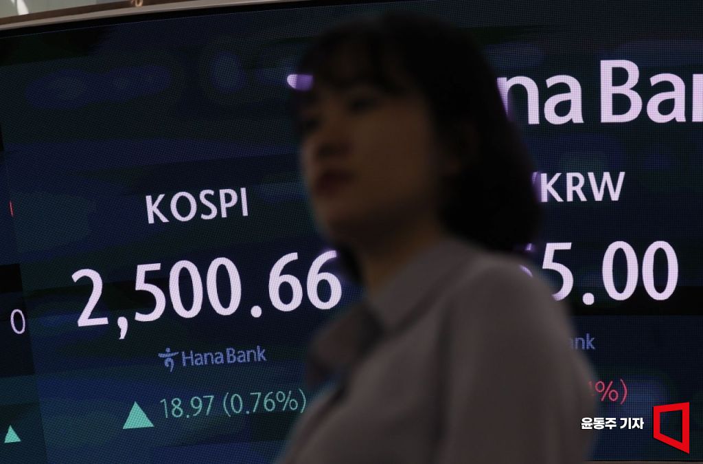 코스피 지수가 2,500을 넘어서며 장을 시작한 5일 서울 중구 하나은행 딜링룸 지수 현황판에 지수가 표시되고 있다. 윤동주 기자