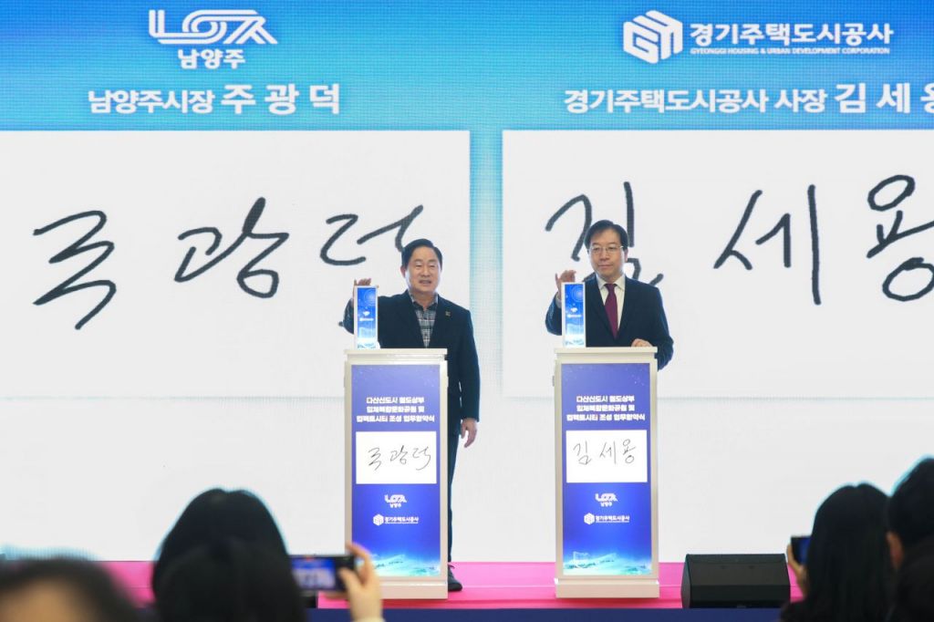 경기 남양주시(시장 주광덕)는 5일 김세용 GH 사장 등 주요 관계자들이 참석한 가운데 다산동에서 경기주택도시공사(GH)와 가칭 '정약용 공원' 조성을 위한 업무협약을 체결했다.