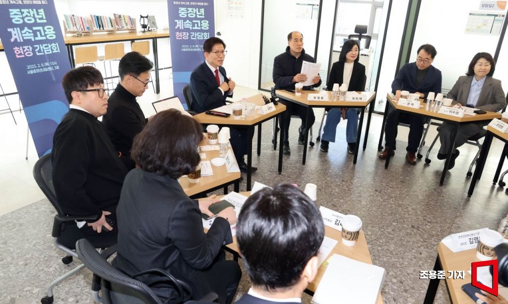 김문수 고용노동부 장관 6일 서울 중구 퇴계로 서울중장년내일센터에서 열린 '중장년 계속고용 현장 간담회'에 참석, 지원방안 및 현안에 대해 발언하고 있다.