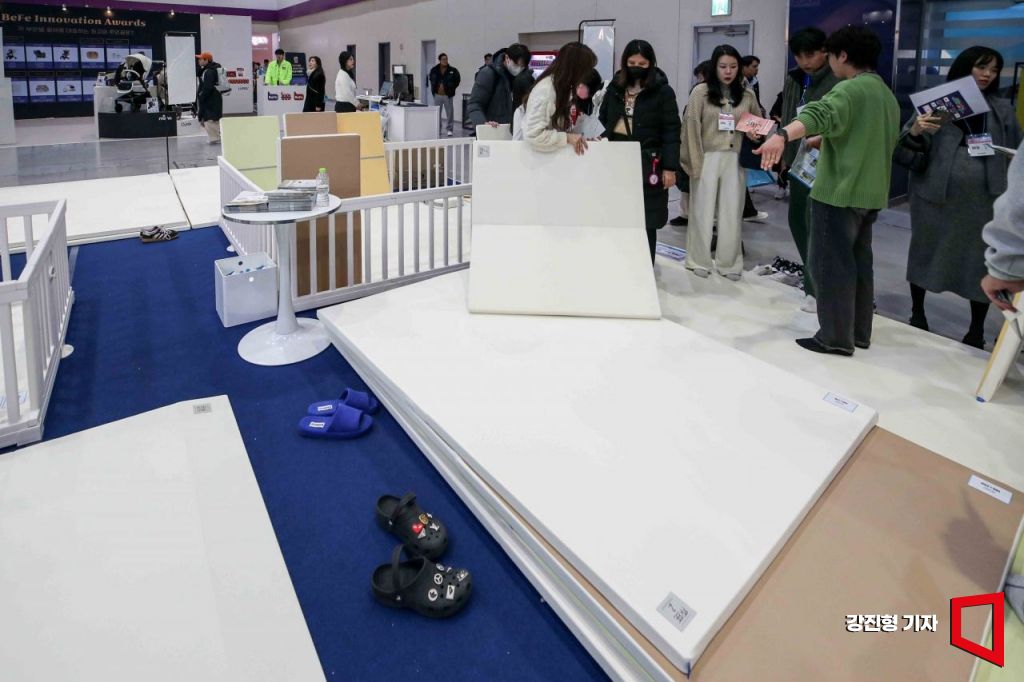 6일 서울 강남구 코엑스에서 열린 '제47회 베페 베이비페어'를 찾은 관람객들이 육아용품을 보고 있다.