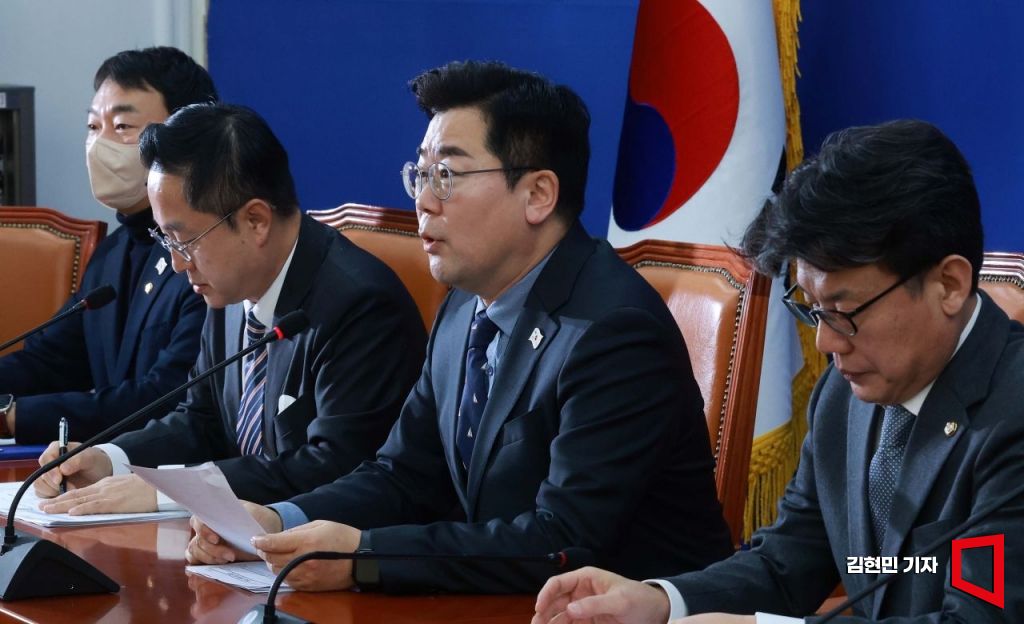 박찬대 더불어민주당 원내대표가 6일 국회에서 열린 정책조정회의에서 발언하고 있다.