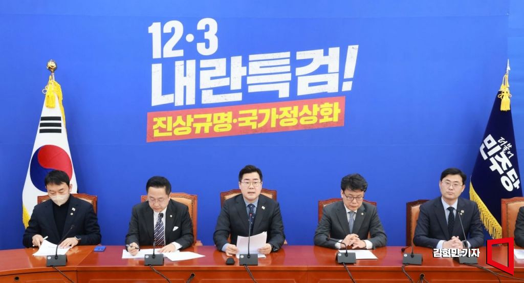 [포토] 민주 '명태균특검법 추진…검찰 수사로 밝혀진 게 없어'