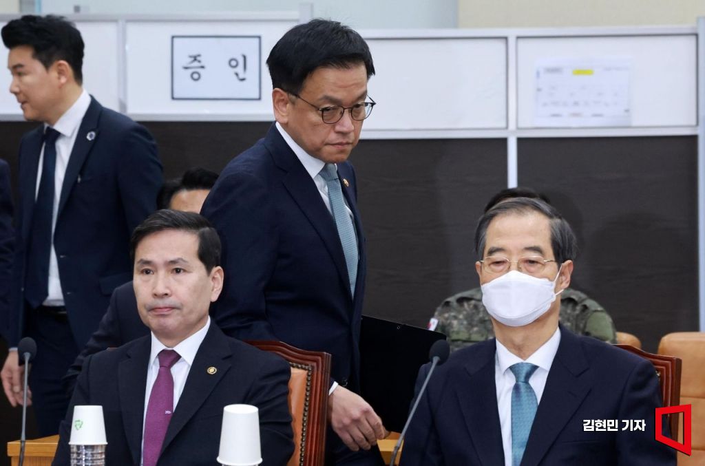 최상목 대통령 권한대행 부총리 겸 기획재정부 장관이 6일 국회에서 열린 '윤석열 정부의 비상계엄 선포를 통한 내란 혐의 진상규명 국정조사 특별위원회' 3차 청문회에 참석하고 있다.
