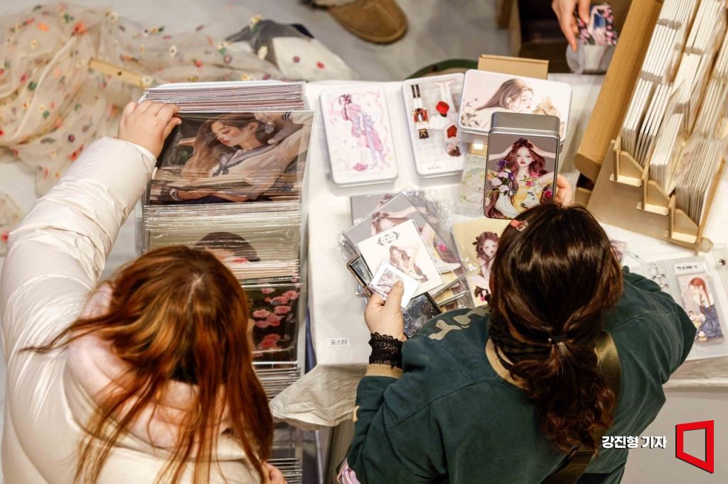 6일 서울 강남구 코엑스에서 열린 'K-일러스트레이션페어 서울 2025'를 찾은 관람객들이 캐릭터를 이용한 상품을 보고 있다.