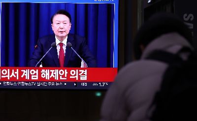 윤석열 대통령이 4일 새벽 4시30분 긴급 담화를 통해 어젯밤 선포된 비상계엄을 국회의 요구를 수용해 해제한다고 밝혔다. 사진은 윤대통령 긴급 담화가 서울역 대합실 TV에 나오고 있다. 조용준 기자