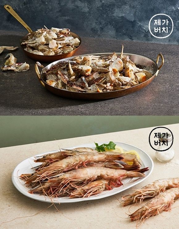 카카오 메이커스의 태안 먹거리 페이지(사진 위-꽃게, 아래-대하). /태안군