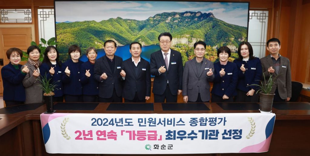 화순군이 ‘2024 민원 서비스 평가’에서 최우수 등급을 받아 2년 연속 최우수기관으로 선정됐다.