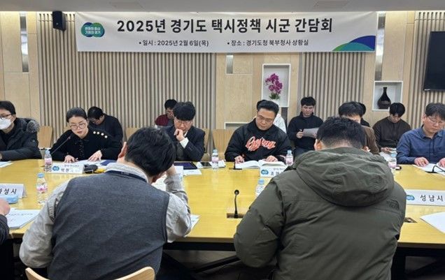 경기도는 6일 경기도청 북부청사에서 ‘2025년 도-시군 택시정책 간담회’를 개최했다. 이날 간담회에는 경기도 택시교통과와 시군 택시담당 팀장 등 60여 명이 참석해 2025년 택시정책의 발전과 협력 강화방안을 논의했다.