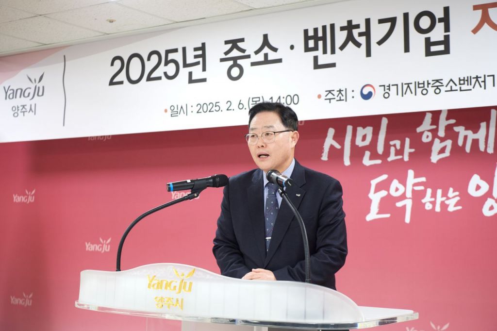 강수현 양주시장이 6일 시청 대회의실에서 개최된 ‘2025년 중소벤처기업 지원 시책 설명회’에 참석해 관내 기업인들을 격려하고 지역 경제 활성화를 위한 적극적인 지원을 약속했다.