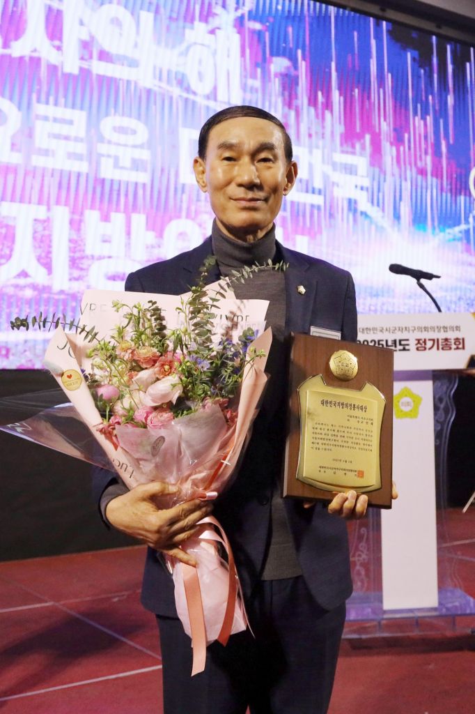 ‘대한민국지방의정봉사대상’은 지역사회 발전과 주민 복리 증진에 헌신하고, 지방자치 발전 및 지방의회 위상 강화에 기여한 공로가 큰 의원에게 주어지는 상이다. 대한민국 시군자치구의회의장협의회가 주관, 지방의회 발전연구원 의정활동 평가를 바탕으로 선정된다.