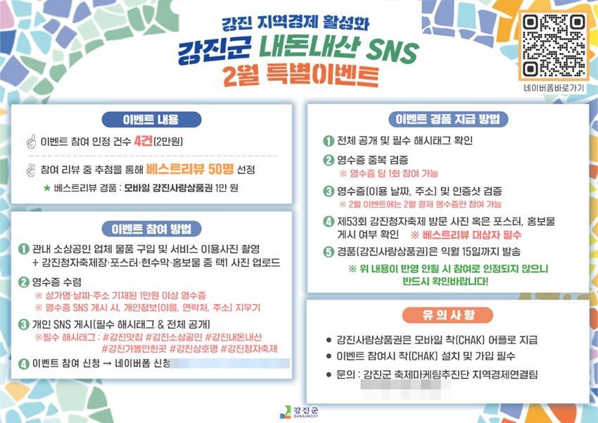 7일 군에 따르면 지난 1월 한 달간 강진사랑상품권 구매 한도를 70만원에서 100만원으로 상향했으며, 모바일 상품권의 경우는 할인율을 10%에서 15%로 상향 조정했다.