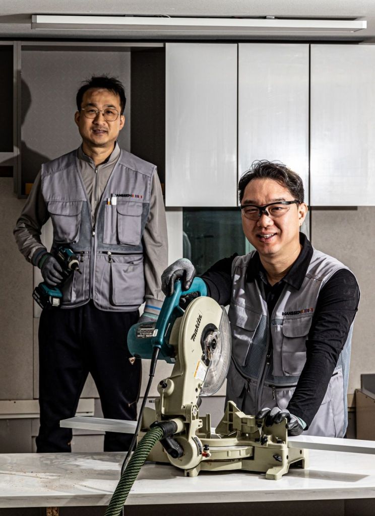 한샘이 홈 인테리어 시공 전문가 ‘시공프로’를 모집하는 가운데, 한샘의 시공명장들이 포즈를 취하고 있다. 한샘 제공