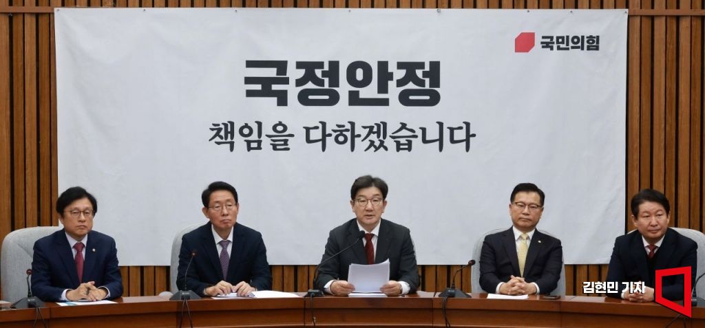 권성동 국민의힘 원내대표가 7일 국회에서 열린 원내대책회의에서 발언하고 있다.