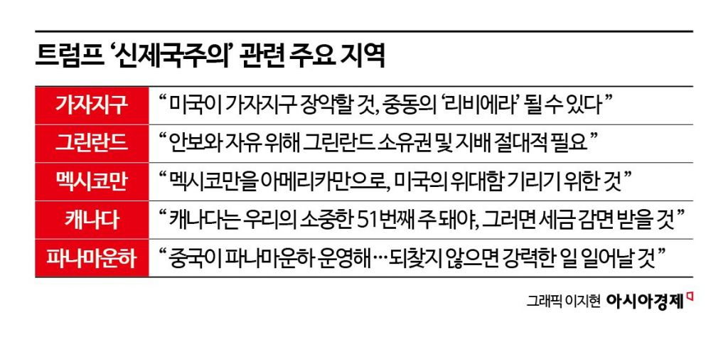 "트럼프는 100년 만에 미국 영토 확장을 주장한 대통령이다. 새로운 미국 제국주의(The new American imperialism)다."(이코노미스트)