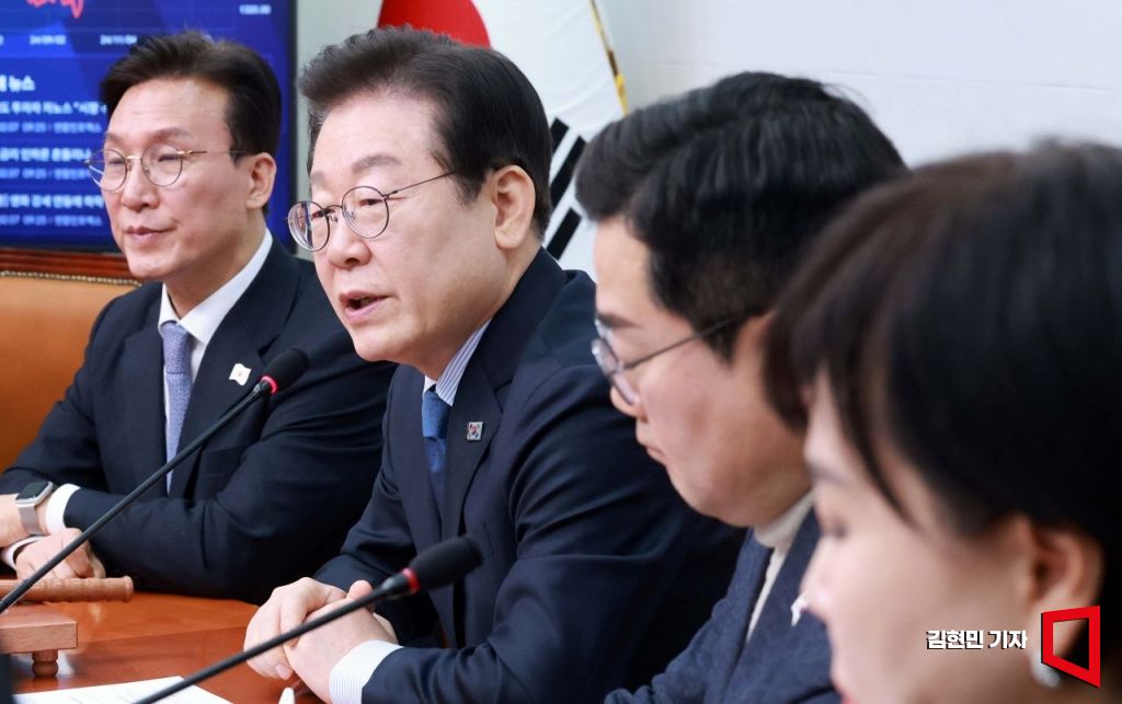 이재명 더불어민주당 대표가 7일 국회에서 열린 최고위원회의에서 발언하고 있다.