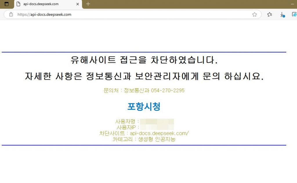 포항시는 최근 인공지능(AI)서비스인 딥시크(Deepseek)의 보안성과 개인정보 보호 수준에 대한 검토가 완료될 때까지 행정업무용 네트워크에서 해당 서비스의 접속을 일시적으로 차단키로 결정했다.