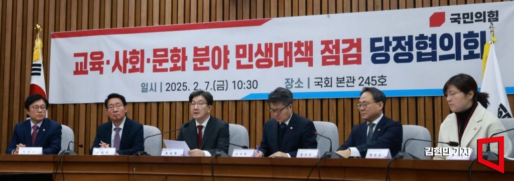 권성동 국민의힘 원내대표가 7일 국회에서 열린 교육·사회·문화 분야 민생대책 점검 당정협의회에서 발언하고 있다.