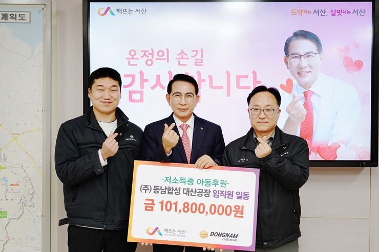 충남 서산시는 ㈜동남합성 대산 공장이 관내 저소득층 아동의 건강한 성장을 위해 2450만 원을 후원 했다고 7일 밝혔다.