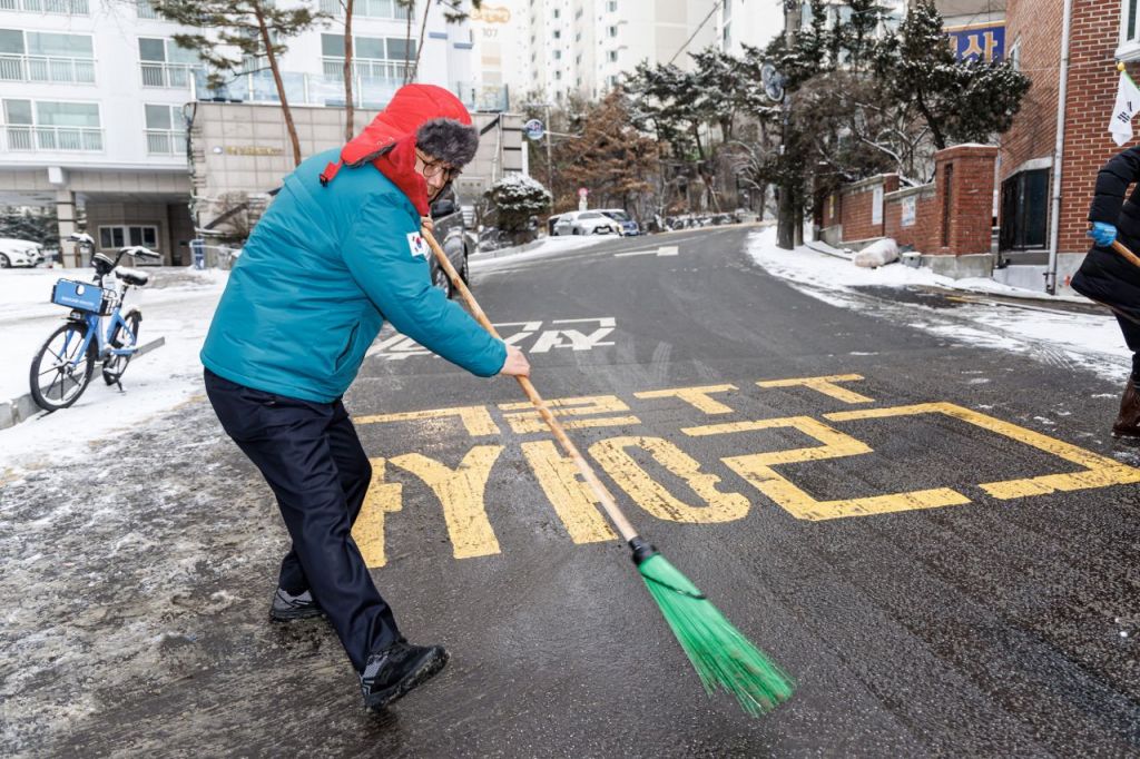 박강수 마포구청장은 이날 제설 장비를 점검하고 직접 제설작업에도 참여했다. 특히 도로 열선이 제대로 작동하고 있는지 중점적으로 점검했다.