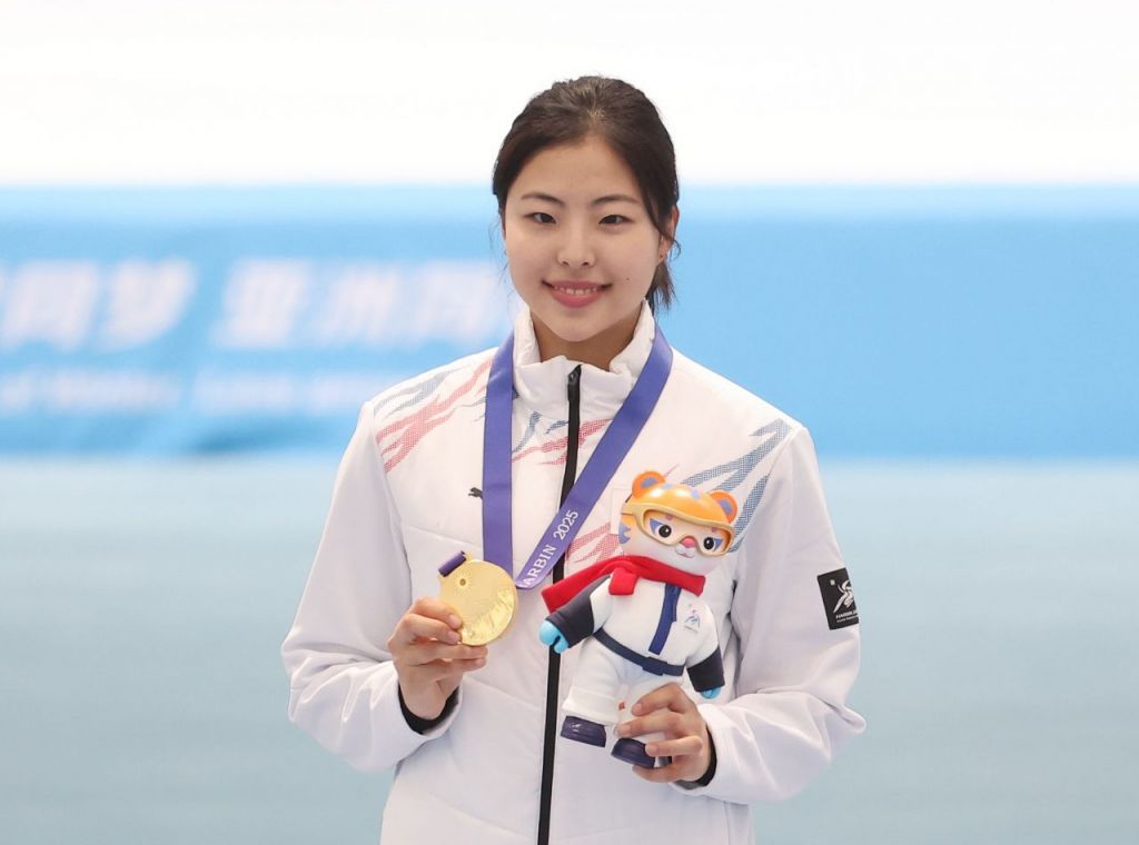 이나현(한국체대)이 2025 하얼빈 동계 아시안게임에서 금메달을 목에 걸었다.