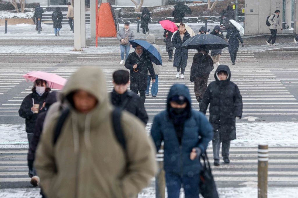 강추위와 함께 눈이 내리고 있는 7일 서울 여의대로에서 직장인들이 출근길에 오르고 있다. 2025.2.7. 강진형 기자