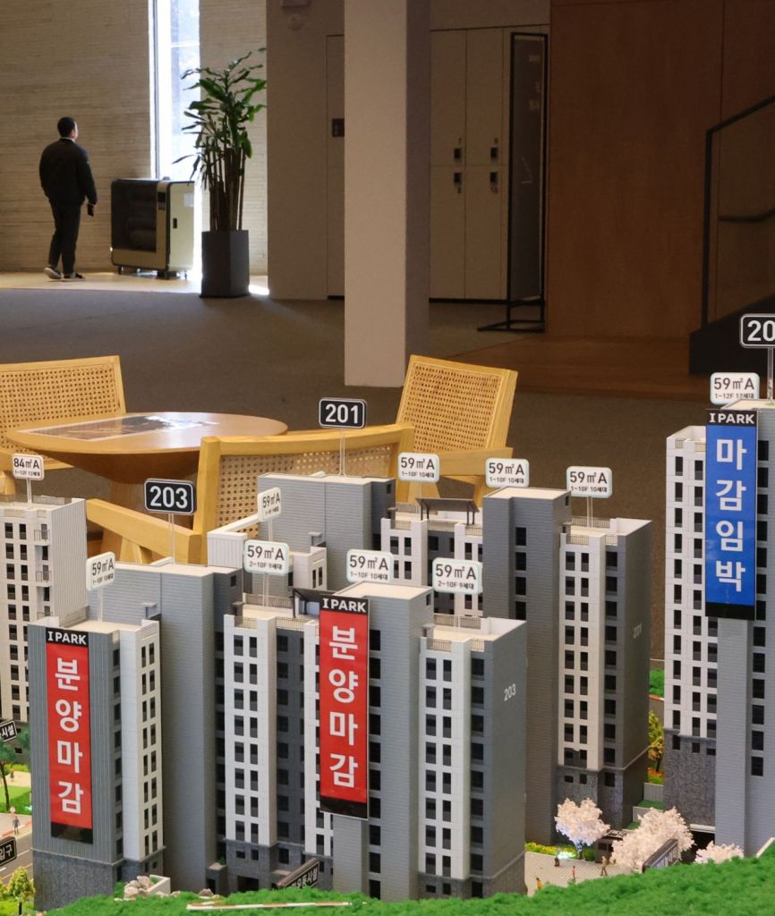 5일 오후 경기도 고양시 한 부지에 세워진 서울 분양 아파트 견본주택 모습. 연합뉴스