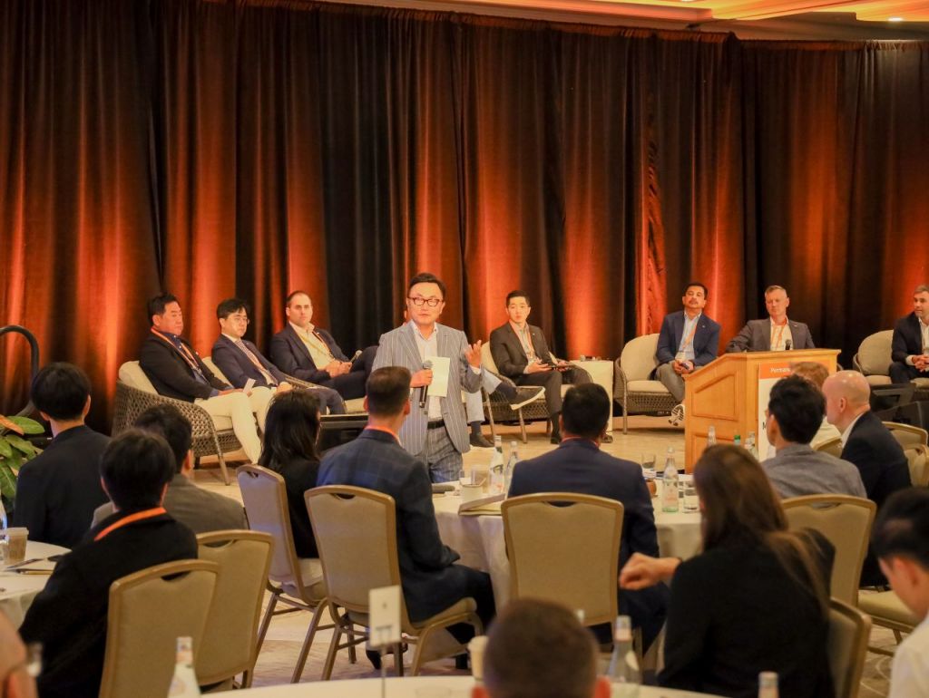 미국 페어몬트 하와이 호텔에서 열린 ‘미래에셋 ETF Rally 2025’에서 미래에셋그룹 박현주 회장과 글로벌 ETF 임직원이 ETF 비즈니스 현황을 공유하고 있다.