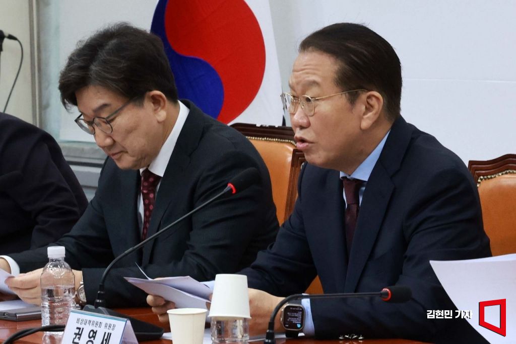 권영세 국민의힘 비상대책위원장이 10일 국회에서 열린 비상대책위원회의에서 발언하고 있다. 2025.2.10 김현민 기자