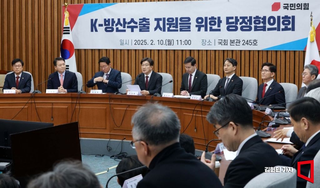 권성동 국민의힘 원내대표가 10일 국회에서 열린 K-방산수출 지원을 위한 당정협의회에서 발언하고 있다.