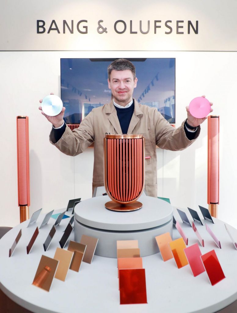 홈 엔터테인먼트 브랜드 뱅앤올룹슨(Bang & Olufsen)이 10일 오전 서울 강남구 뱅앤올룹슨 플래그십 스토어에서 고객 맞춤형 제품 제작 프로그램인 ‘아틀리에(Atelier)’ 론칭 행사를 열었다. 아틀리에 총괄 디렉터 마시모 카팔디(Massimo Capaldi)가 맞춤형 제품, 아틀리에 리미티드 에디션 베오사운드 2 그라디언트 컬렉션 등을 소개하고 있다. 뱅앤올룹슨 제공