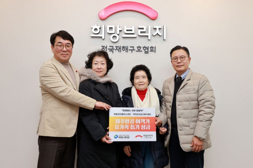 신훈 희망브리지 사무총장은 “유가족 지원에 따뜻한 손길을 보태주신 여의도복지관과 어르신들께 감사드린다”며 “전달된 성금과 위로의 마음이 유가족들에게 작은 힘이 되길 바란다”고 말했다.