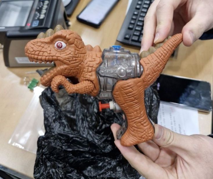 검은 비닐봉지 속에 권총으로 위장된 물총. 기장경찰서 제공