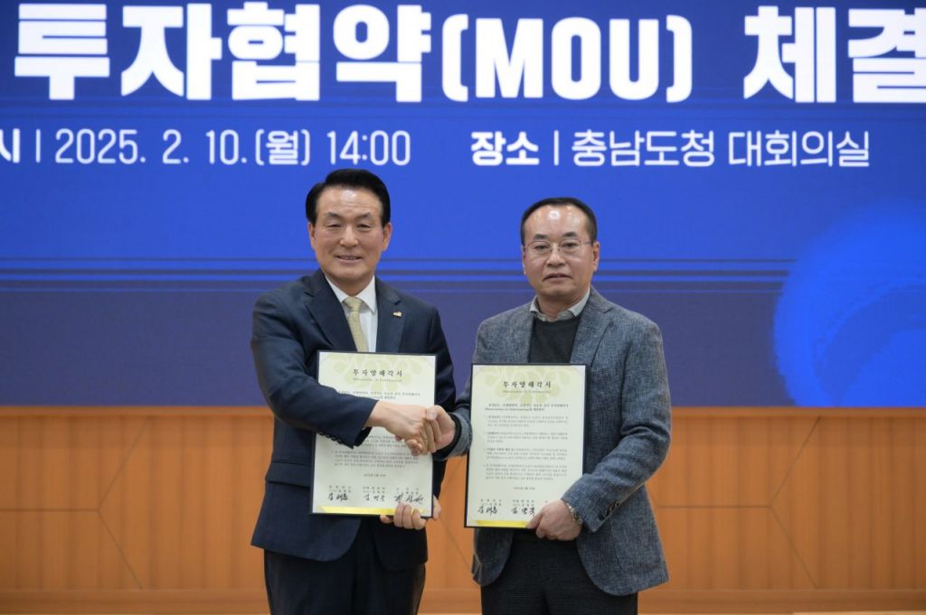 충남 논산시는 10일 충남도청에서 ㈜대명연마와 100억 원 규모의 투자협약을 체결했다고 밝혔다.