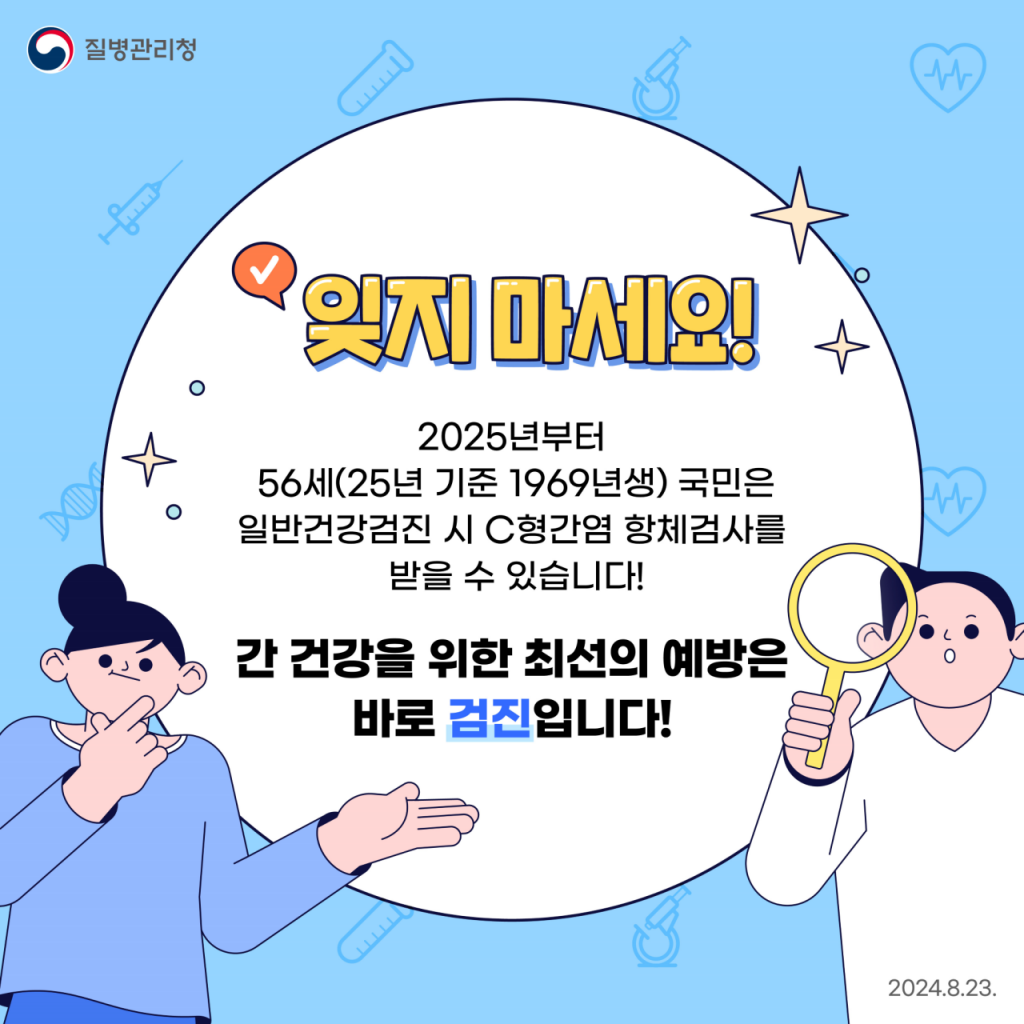 전라남도는 올해부터 56세에 해당하는 도민은 국가건강검진을 받을 때 C형 간염 항체 검사를 받을 수 있다고 11일 밝혔다.