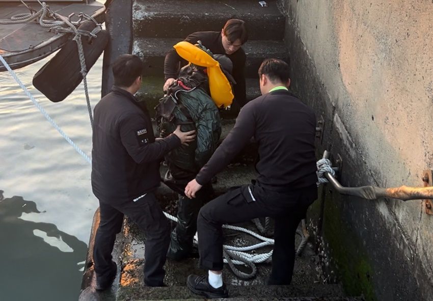 사고 당시, 주변 선원들이 익수자 A씨(70대)에게 로프를 던져 구조를 시도했으나, 힘에 부친 A씨는 육지로 올라오지 못하고 있던 상황으로 구조가 지체될 시 자칫 저체온증으로 이어져 소중한 생명을 잃을 수도 있던 상황이었다.