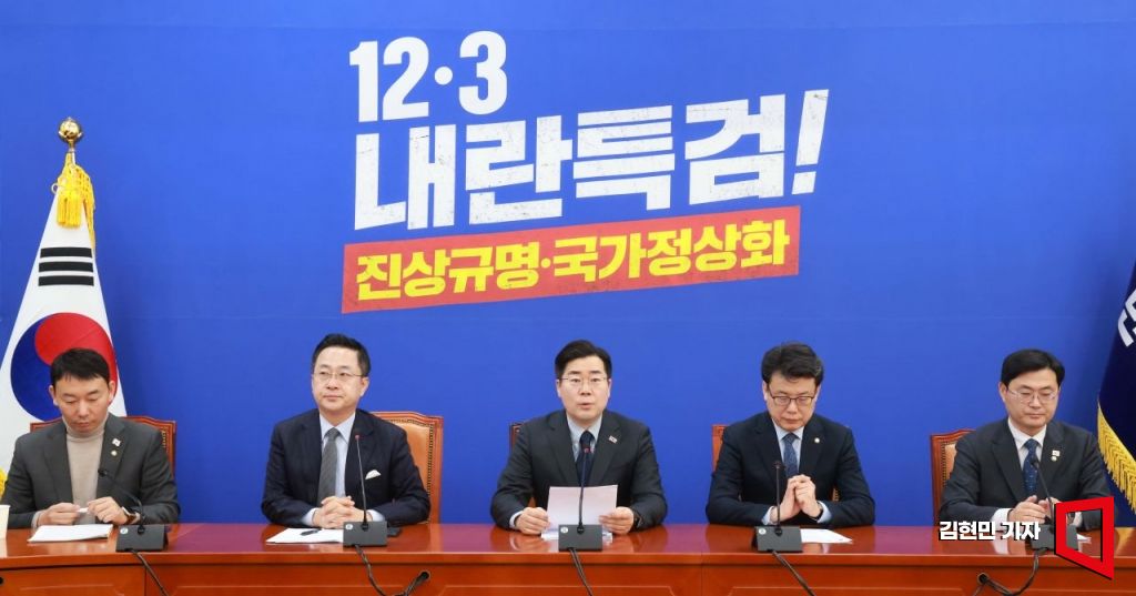 박찬대 더불어민주당 원내대표가 11일 국회에서 열린 원내대책회의에서 발언하고 있다.