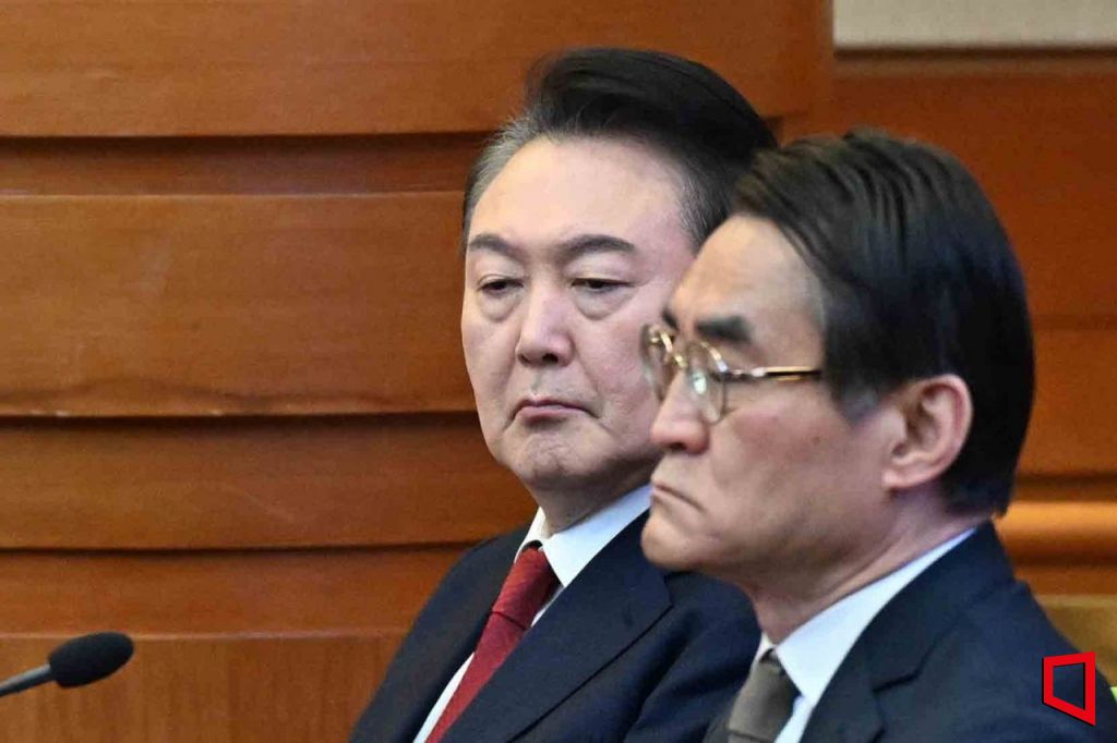 윤석열 대통령이 11일 서울 종로구 헌법재판소에서 열린 '윤석열 대통령 탄핵심판 7차 변론'에 출석하고 있다. 사진공동취재단