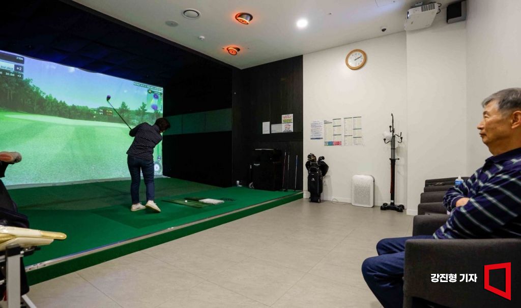 실내 골프연습장에서 연습 중인 입주자. 아시아경제 자료사진