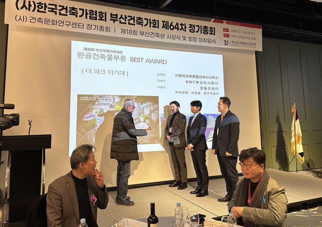 부산도시공사(BMC)는 한국건축가협회 부산건축가회가 주관한 제40회 부산국제건축대전 완공건축물 부문 작품공모전에서 남구 용호동에 복합개발한 ‘더 파크 이기대’가 주거건축 금상을 수상했다.