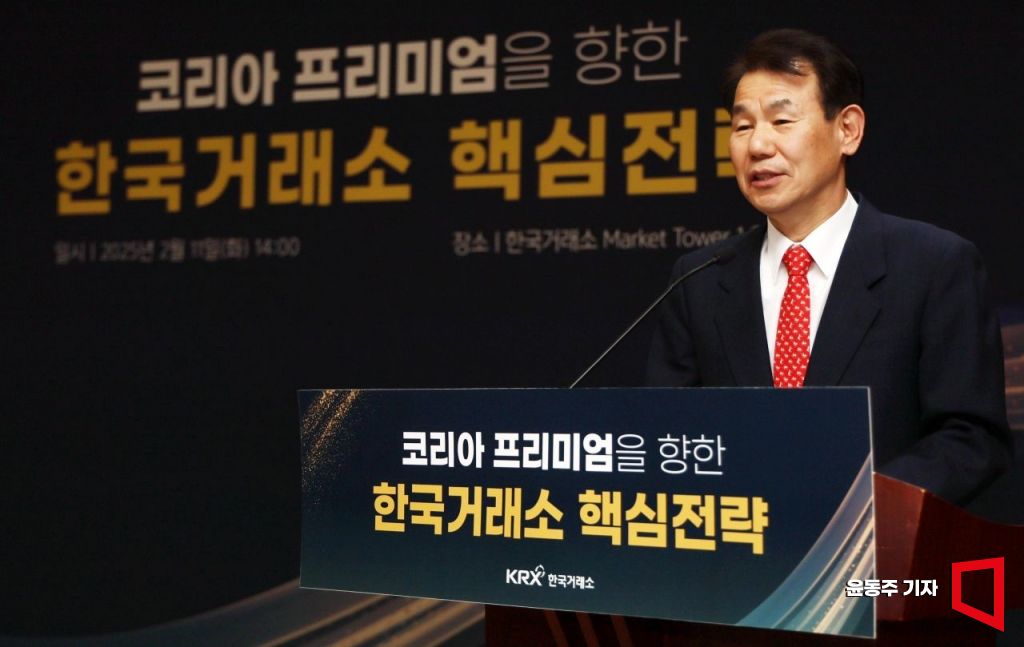 정은보 한국거래소 이사장이 11일 서울 여의도 한국거래소에서 신년 기자간담회를 갖고 있다.