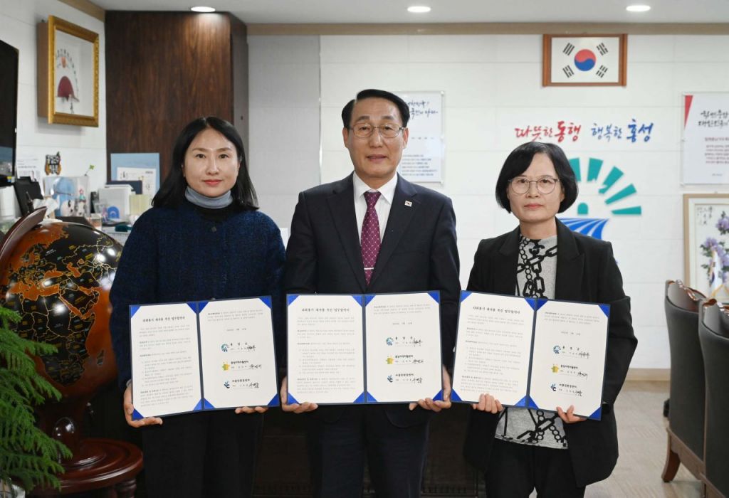 군은 11일 다회용기 재사용 체계 구축과 취약계층 일자리 창출을 위해 군수실에서 홍성지역자활센터, ㈜클린환경센터와 3자 업무협약을 체결했다.