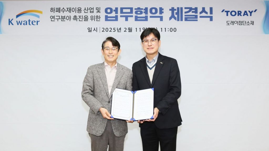 도레이첨단소재와 한국수자원공사(K-water) 연구원이 하수와 폐수를 정화해 다시 이용하는 친환경 사업을 위해 맞손을 잡았다.