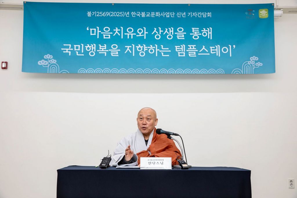 조계종 한국불교문화사업단장 만당 스님은 11일 서울 종로구 템플스테이 통합정보센터에서 신년 기자 간담회를 열고 사찰 음식과 템플스테이 관련 사업 방안을 전했다.
