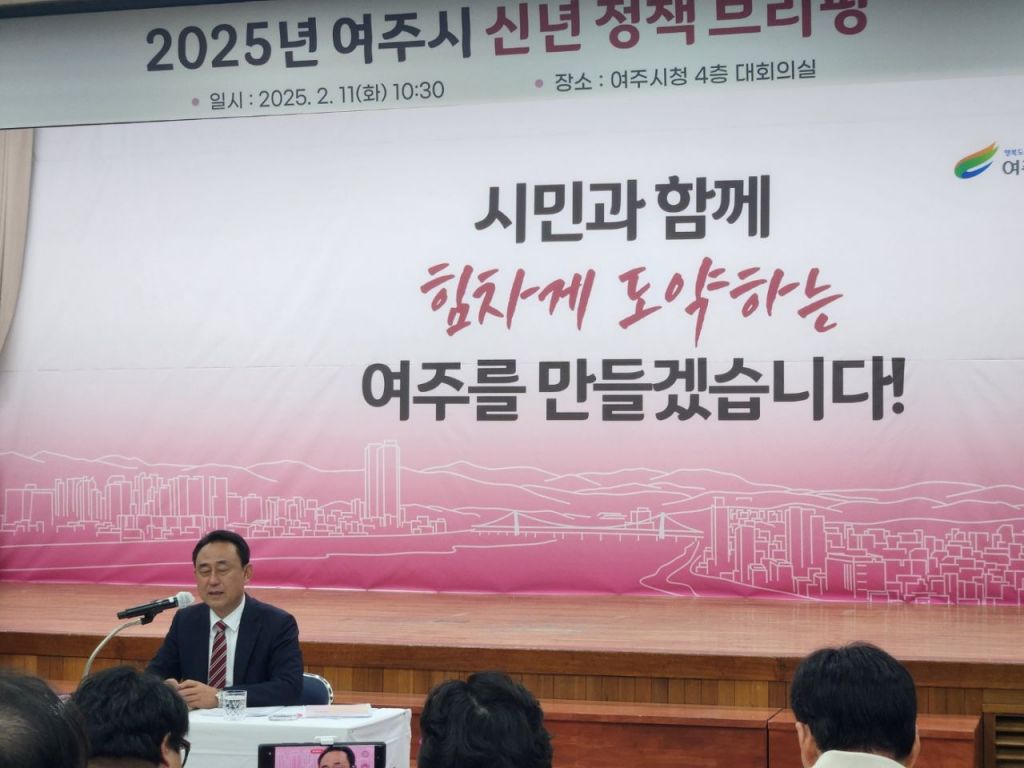 이충우 여주시장이 11일 시청 대회의실에서 열린 2025년 신년 정책 브리핑에서 발언하고 있다. 이종구 기자