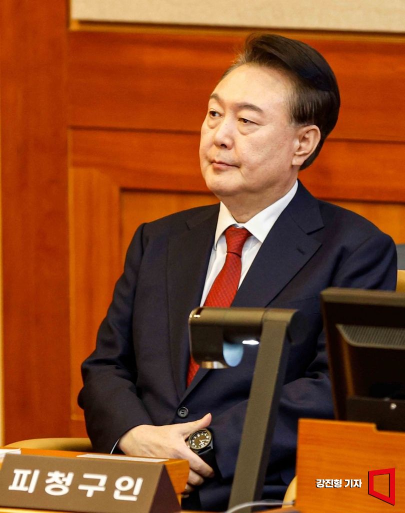 윤석열 대통령이 11일 서울 종로구 헌법재판소에서 열린 '윤석열 대통령 탄핵심판 7차 변론'에 출석 하고 있다. 2025.2.11. 강진형 기자