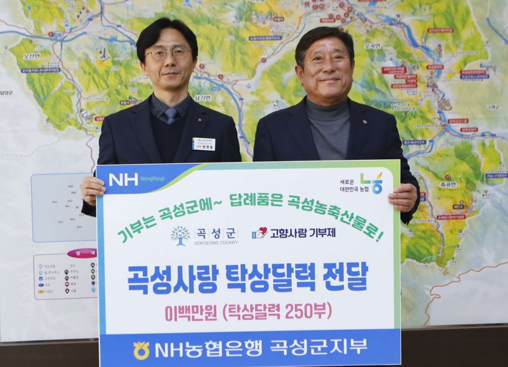 농협 곡성군지부(지부장 방현용)는 11일 곡성군청 군수실에서 고향사랑기부제 활성화를 위해 자체 제작한 ‘곡성사랑 탁상달력’ 250개(200만원 상당)를 곡성군에 전달했다.